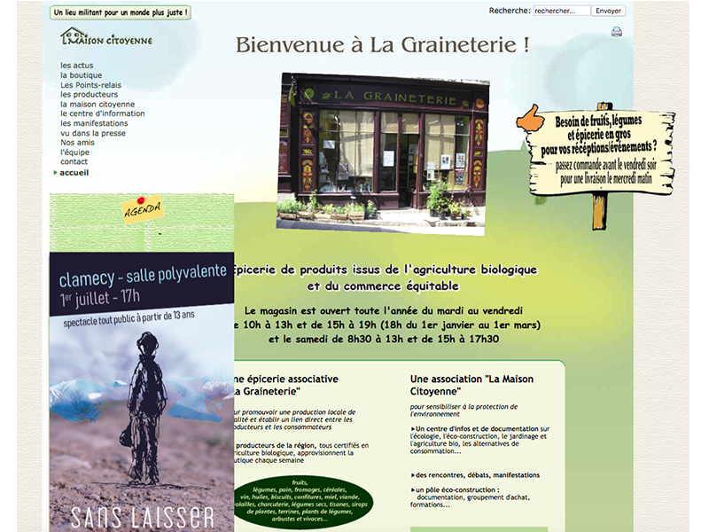 La boutique associative «La Graineterie» (gérée par l’association « La Maison citoyenne » ) est un centre de ressources sur le commerce équitable. Mission : Refondre la Graineterie en un site e-commerce. Mettre en avant ses services, son espace de convivialité et son éthique. Proposer une interface simple, intuitive, efficace, rassurante, crédible, agréable et adaptée aux différentes cibles.